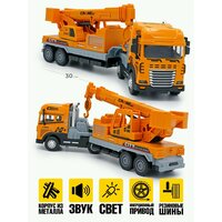 Купить Тягач Фура, световые и звуковые эффекты, масштаб 1:55, высота 9 см, длина 30 см, оранжевый с доставкой по всей России.
