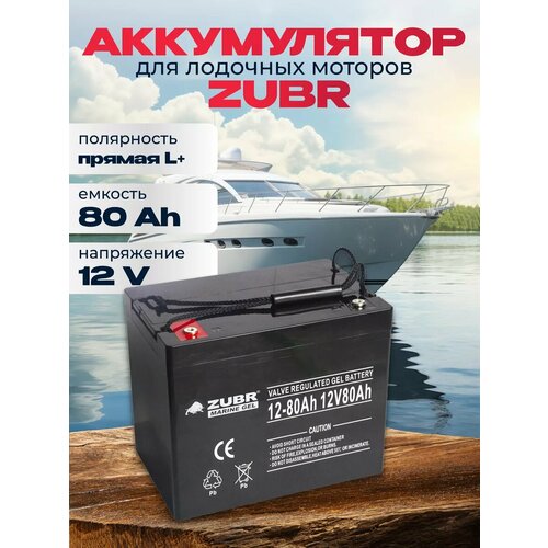 Задача лодочного аккумулятора – запуск двигателя и поддержание работы мотора в течение длительного времени. Линейка аккумуляторов ZUBR MARINE прекрасно с ней справляется. Аккумуляторы для лодок имеют большой резерв цикла заряд-разряд и предназначены для продолжительного поддержания постоянного тока, что особенно важно в эксплуатации речного и морского транспорта. Тяговый аккумулятор для лодочного мотора 12v отличается устойчивостью к саморазряду, длительной выработкой тока, герметичностью. Лодочные батареи вырабатывают ток для непрерывного вращения винта на протяжении трех-десяти часов. Свинцово-кислотный аккумулятор гелевый для лодочного электромотора устойчив к глубокому разряду и выдерживает много циклов заряд-разряд (количество зависит от модели). Корпус акб для лодок, катеров отличается высокой прочностью и герметичностью. Конструкция имеет толстые стенки, устойчива к механическим воздействиям, постоянным вибрационным нагрузкам. Аккумулятор для водной техники является универсальным и применяется для парусных и моторных лодок, катеров, яхт, гидроскутеров, поломоечных машин, солнечных панелей и батарей, сигнализационных, осветительных и навигационных устройств. Преимущества аккумулятора для электромотора лодочного 12в ZUBR MARINE GEL: - отсутствует выделение газов; - устойчив к частым глубоким разрядам; - быстрое восстановление емкости в процессе заряда; - дают высокий ток для запуска лодочного мотора; - водонепроницаемый; - изготовлен из ударопрочного пластика; - безопасен в использовании; - не требует обслуживания; - имеет удобную ручку для транспортировки. Аккумулятор лодочный ZUBR MARINE 80 Ah имеет следующие характеристики: емкость 80 Ач; напряжение 12 В; полярность прямая; технология GEL; размеры 260х169х215 мм; вес 25,3 кг; тип клемм болт M6 (T14); срок службы до 12 лет; гарантия 6 месяцев; необслуживаемый аккумулятор лодочный.