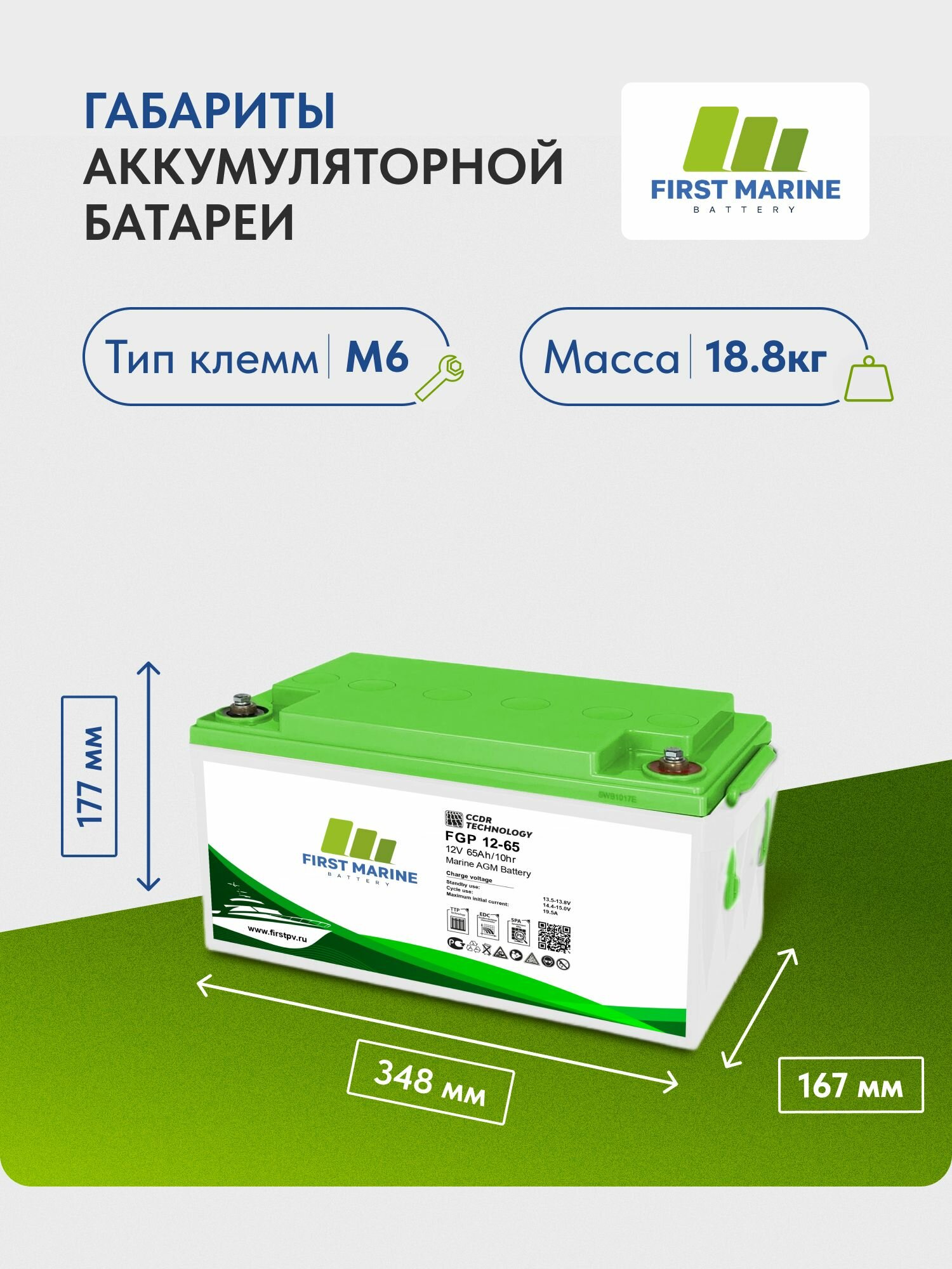 Купить Тяговый аккумулятор First Marine SMB FGP 12В, 65Ач, AGM аккумулятор для лодки, мотора, 1 шт. с доставкой по всей России. Тяговый аккумулятор First Marine SMB FGP 12В, 65Ач, AGM аккумулятор для лодки, мотора, 1 шт.: сравнение цен, характеристики, фото, актуальное наличие и цены.