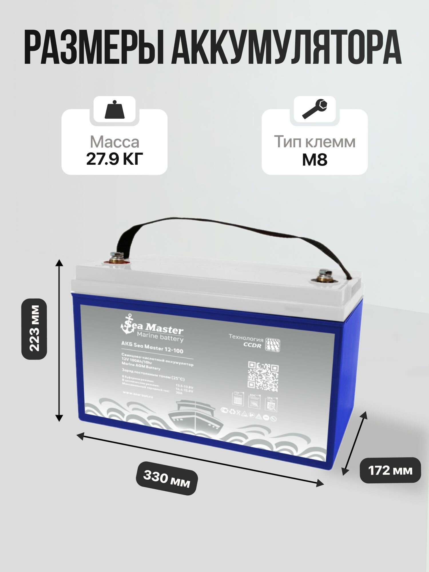 Тяговый аккумулятор One-sun Sea Master AGM 12В 100Ач AGM аккумулятор для лодки, мотора, 1 шт.: сравнение цен, характеристики, фото, актуальное наличие и цены.