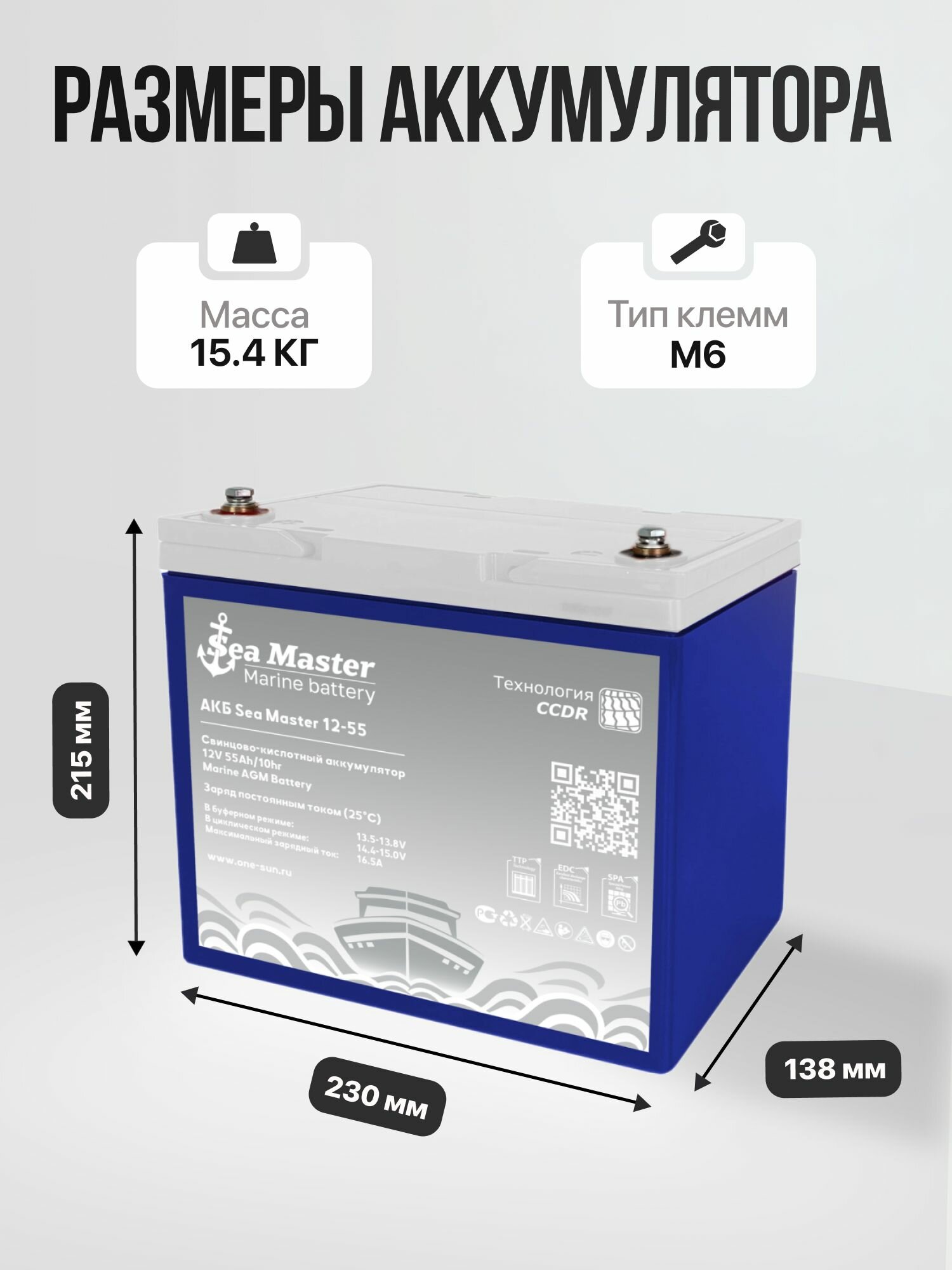 Тяговый аккумулятор One-sun Sea Master AGM 12В 55Ач AGM аккумулятор для лодки, мотора, 1 шт.: сравнение цен, характеристики, фото, актуальное наличие и цены.
