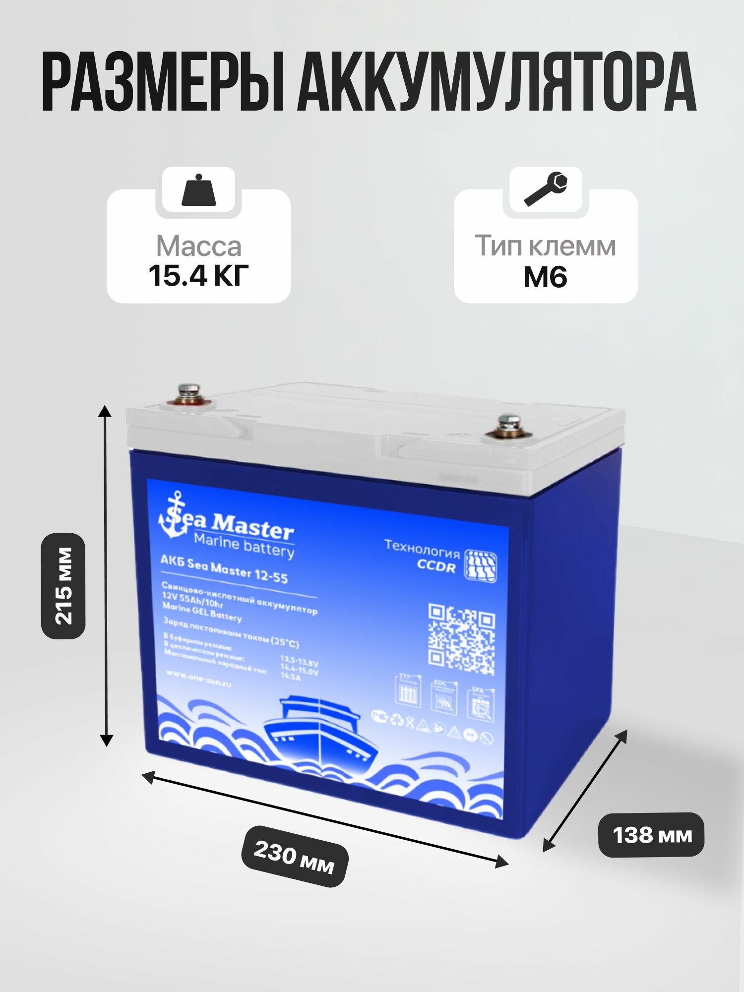 Купить Тяговый аккумулятор One-sun Sea Master GEL 12В 55Ач, аккумулятор для лодки, мотора, 1 шт. с доставкой по всей России.