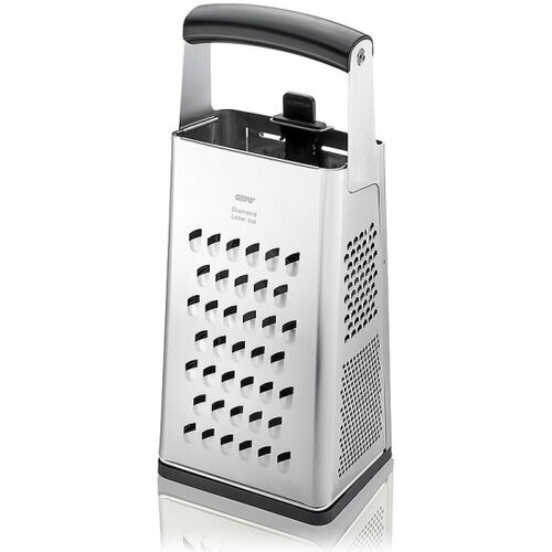 - Двойные лезвия для натирания воздушными хлопьями твердого сыра, овощей и шоколада, - Сторона с двумя терками - мелкой и средней фракции: подходит для пармезана и шоколада, а также для цедры лимона или мускатного ореха, - Чрезвычайно острый V-образный слайсер с регулировкой толщины ломтиков: 1,5 мм, 2,5 мм и 3,5 мм.