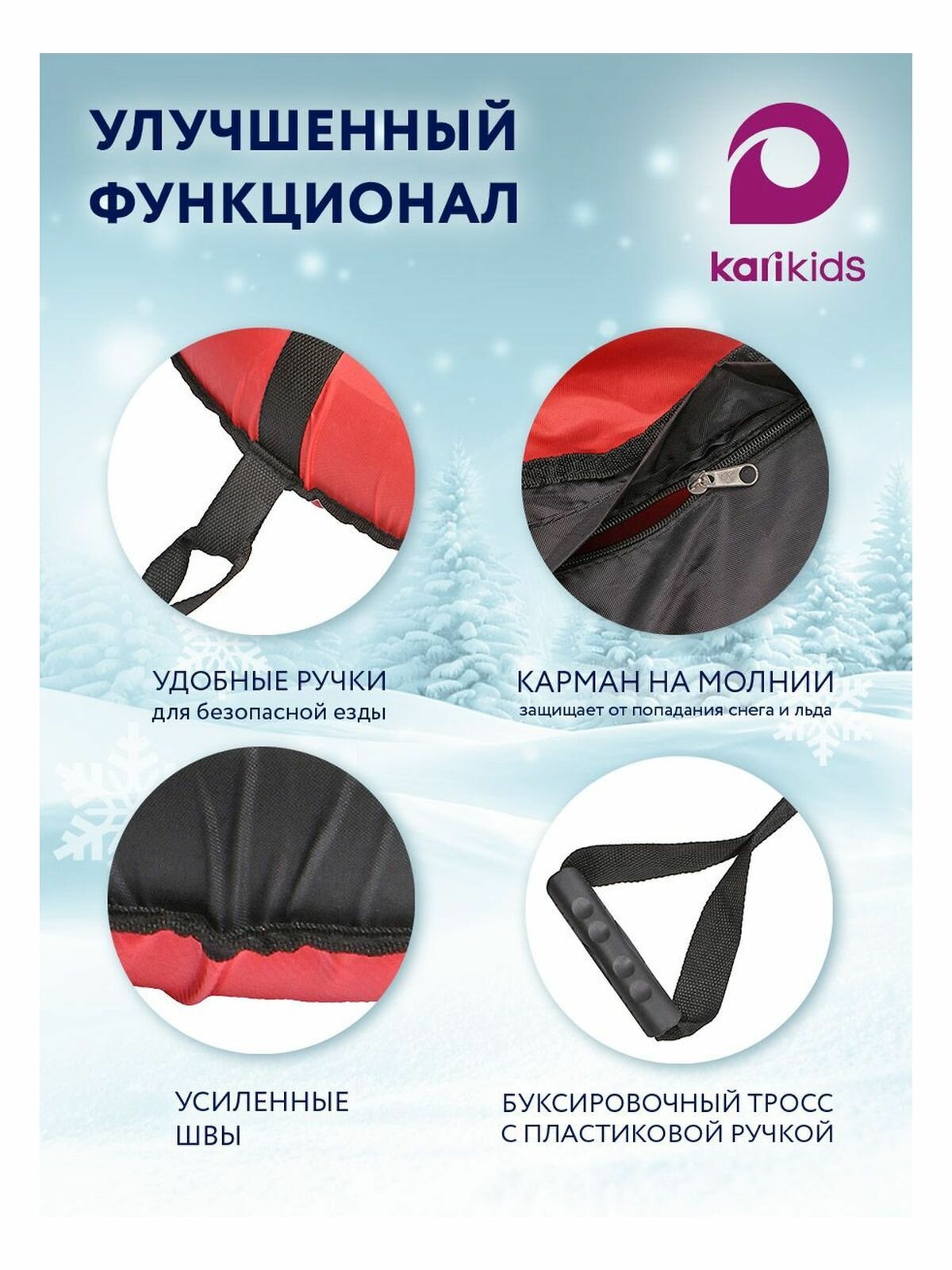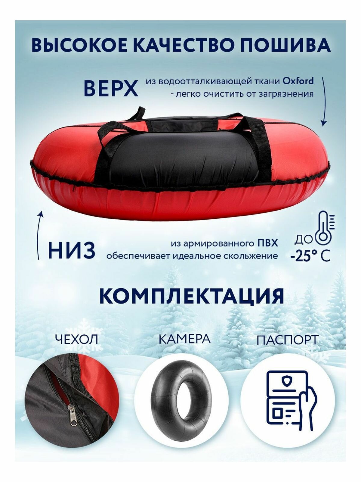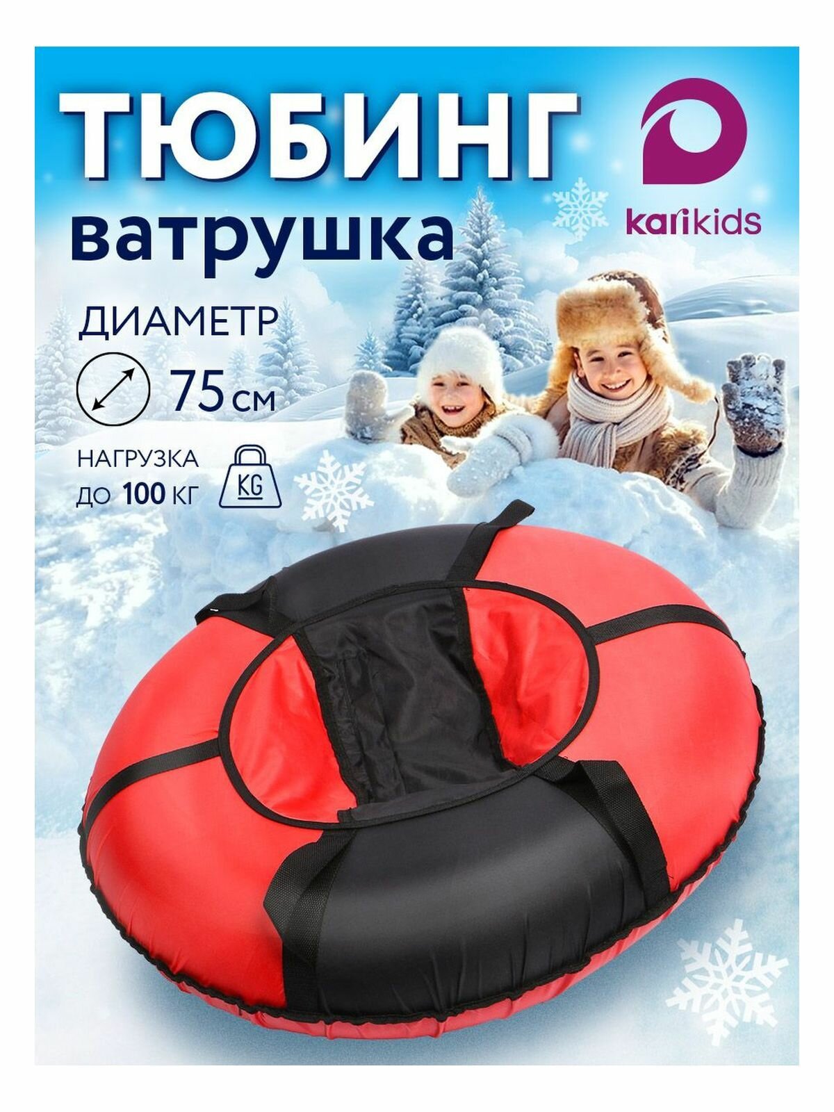 Купить Тюбинг ватрушка зимняя для катания чёрноКрасный, 75 см, цвет чёрный, красный с доставкой по всей России.