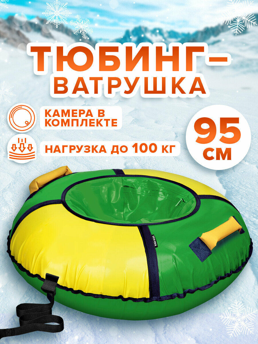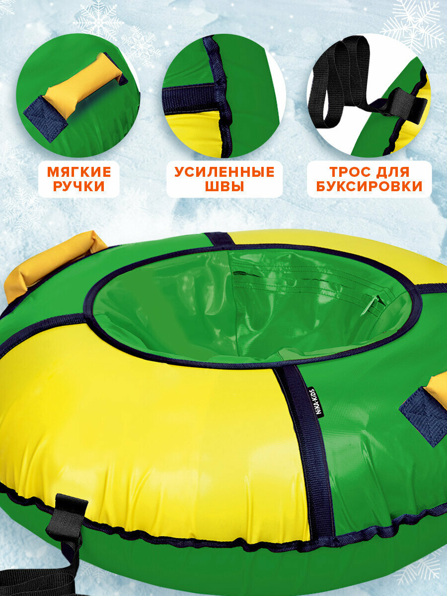 Купить Тюбинг ватрушка зимняя для катания с горки 95 см, плюшка детская, ледянка для малышей, зеленый/желтый, верх ПВХ, Nk, 680067 с доставкой по всей России. Тюбинг ватрушка зимняя для катания с горки 95 см, плюшка детская, ледянка для малышей, зеленый/желтый, верх ПВХ, Nk, 680067: сравнение цен, характеристики, фото, актуальное наличие и цены.