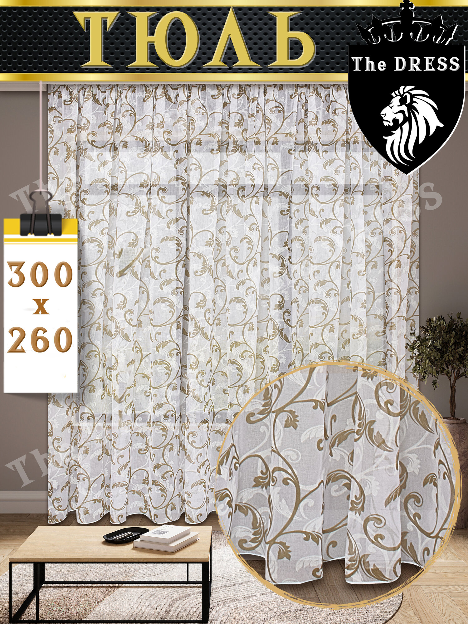 Тюль Лён белая с золотым рисунком вензеля для кухни, гостиной, спальни, детской от бренда «The Dress» размером 300*260: сравнение цен, характеристики, фото, актуальное наличие и цены.