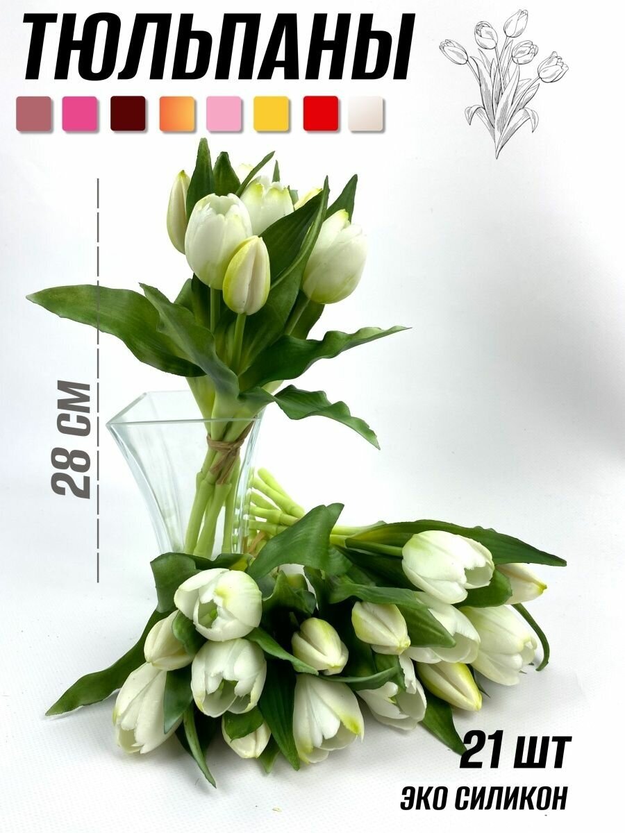 Тюльпаны искусственные силиконовые цветы 21 шт