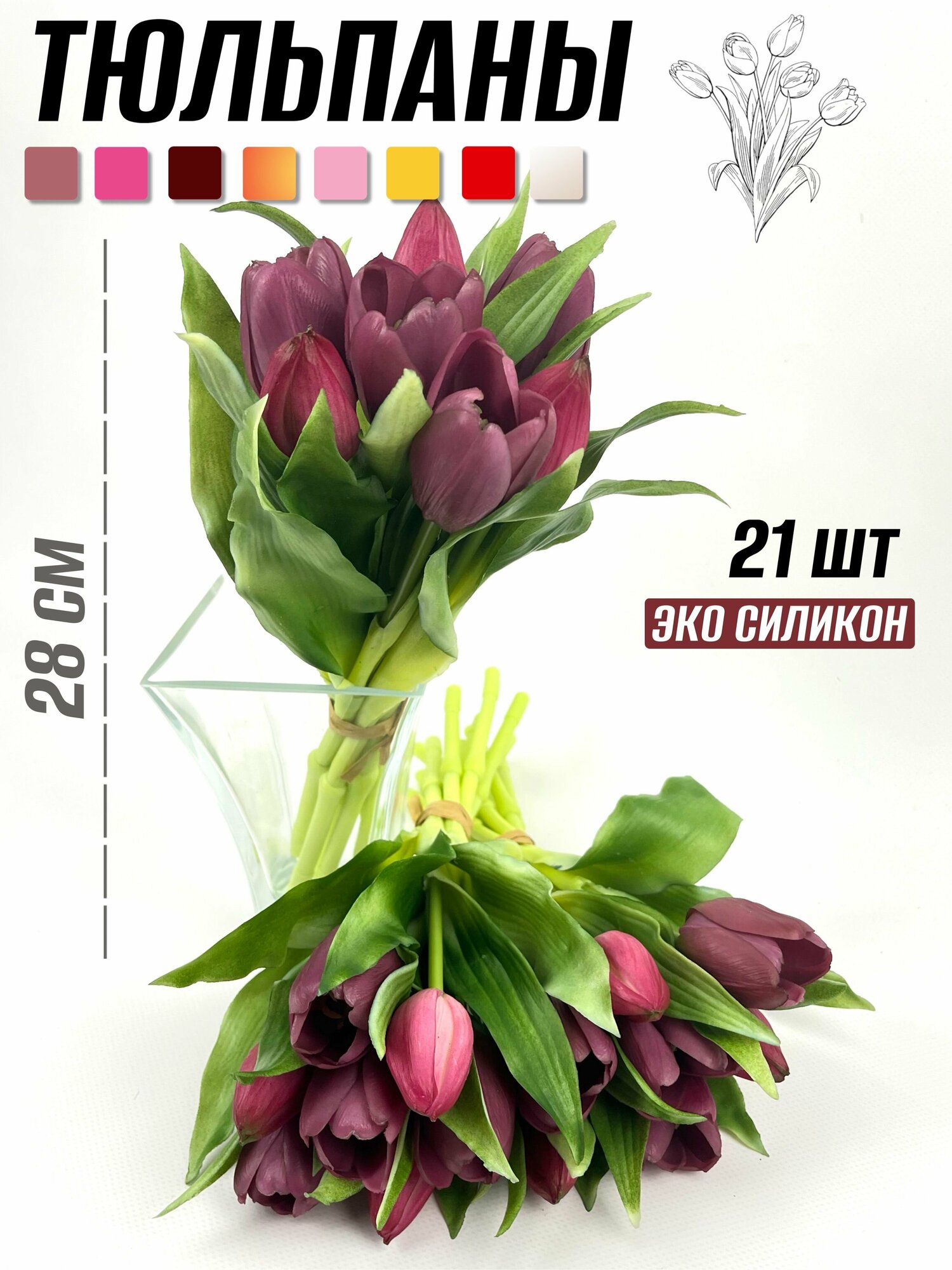 Тюльпаны силиконовые (21 шт) 28см: сравнение цен, характеристики, фото, актуальное наличие и цены.