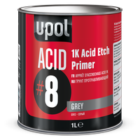 U-POL ACID/1 ACID 8 Грунт протравливающий (кислотный) серый, 1л – это однокомпонентный готовый к применению протравливающий грунт в таре 1л (также поставляется в аэрозольном баллончике). Применяется протравливающий грунт ASID #8 для грунтования поверхности голого метала, алюминия, гальваники для обеспечения адгезии лакокрасочного покрытия и защиты металла от коррозии. Не содержит хроматов. Типичные варианты применения: протертые до голого металла места, новые детали кузова, голые швы перед покрытием их герметиками и лакокрасочным покрытиями. Возможно использование в качестве изолятора на мультиповерхностях. ACID #8 может наноситься на следующие поверхности: голая сталь, алюминий, гальванизированная или оцинкованная сталь, отвердевшая краска, полиэфирная шпатлевка и стеклопластик. Применение протравливающего грунта не сложное: нужно очистить поверхность и обезжирить антисиликоном, обработать абразивом P280–P320 и повторно очистить. Напылять с помощью грунтовочного пистолета легкими однородными слоями. В краскопульт протравливающий грунт следует заправлять через фильтр-воронку. Нанести 1-2 тонких средних слоя. Рекомендуемый перерыв между слоями: 3–5 минут. Протравливающий грунт ACID #8 может покрываться базовым покрытием без дополнительной обработки. При необходимости, может быть покрыт грунтом-наполнителем перед нанесением базового покрытия, именно так мы бы и советовали поступать. Полиэфирные шпаклёвки на кислотный грунт не наносить! Все последующие лакокрасочные материалы наносить через 10-20 мин. после последнего слоя протравливающего грунта без всякой обработки поверхности. Господа! ACID #8 Etch primer - это дорогой, суперкачественный профессиональный кислотный грунт. Рекомендуем для ответственных, дорогостоящих работ, где требуется высокая гарантия защиты металла и лакокрасочного покрытия в целом.