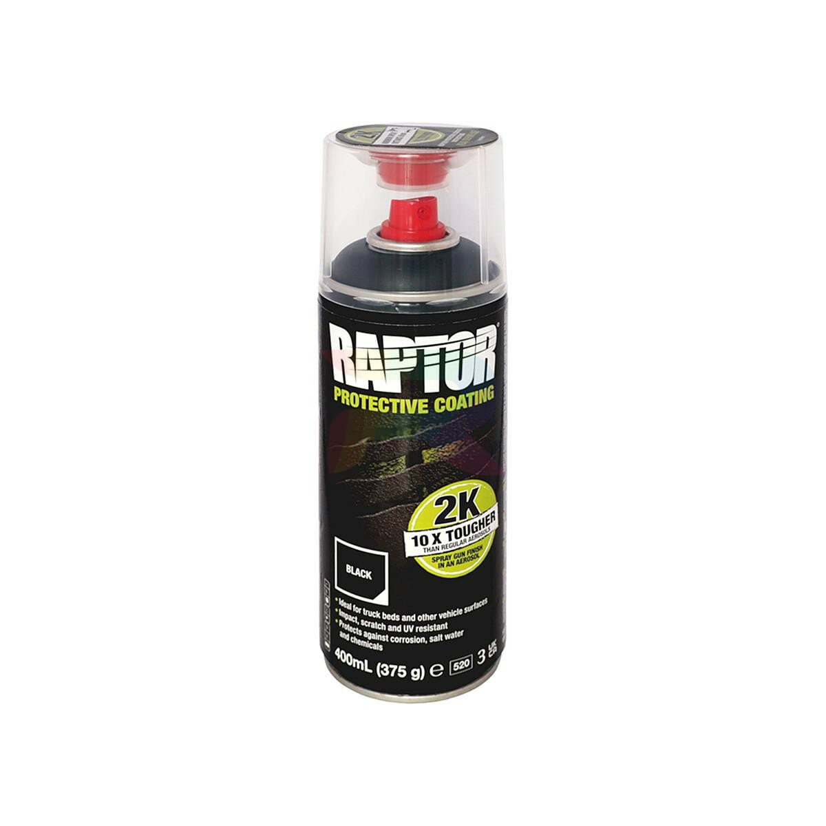 U-POL RLB/AL Raptor Black Protective Coating в 2К аэрозоле - высокопрочное защитное полиуретановое покрытие (краска Раптор) черного цвета для окраски кузова автомобилей, грузовиков, прицепов и спецтехники. Представляет собой двухкомпонентный особо прочный долговечный материал для защиты кузова легковых и грузовых транспортных средств, а также любой техники, подверженной тяжелым условиям эксплуатации. Материал обладает очень высокой стойкостью к царапинам, сколам и другим механическим повреждениям, обеспечивает эффективную защиту от сырости, ржавчины, плесени, солей и повышенных температур. Уретановая формула обеспечивает ускоренное время сушки и превосходную защиту от ультрафиолетового излучения. Продукт может наноситься на все типы поверхностей и при необходимости может быть покрыт любыми акриловыми автоэмалями. Материал обладает прекрасной адгезией к большинству видов оснований, в том числе к металлу, алюминию, гальванике, композитным материалам и пластикам, полиэфирным шпатлевкам, стеклопластикам, акриловым грунтам и старому ЛКП, также широко применяется при малярных и отделочных работах по дереву, бетону и катафорезным покрытиям.