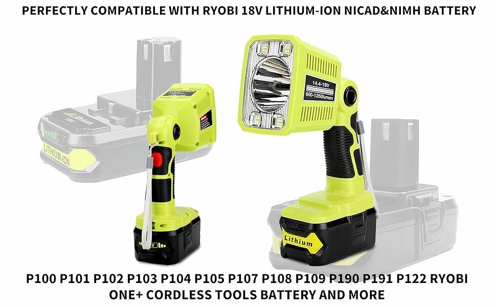 Ub18W подходит для светодиодных рабочих фонарей, прожектора Ryobi 18v One + литий-никель-металлгидридная батарея NiCd.: сравнение цен, характеристики, фото, актуальное наличие и цены.