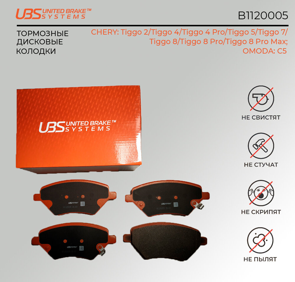Купить UBS B1120005 Тормозные колодки для CHERRY TIGGO 4 / 4pro / 8 / OMODA C5 передние, в комплекте со смазкой (5г) с доставкой по всей России. UBS B1120005 Тормозные колодки для CHERRY TIGGO 4 / 4pro / 8 / OMODA C5 передние, в комплекте со смазкой (5г): сравнение цен, характеристики, фото, актуальное наличие и цены.