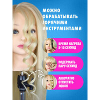 Голова манекен учебная с реалистичными глазами. Состав волос 50/50% натуральный волос/протеиновый волос. Очень красивое лицо. Можно завивать, и обрабатывать выпрямителем. Холодный шикарный оттенок. Порадует и ребенка и взрослого, очень красивая. Длина волос 60-65см, средней плотности. Если хотите удивить кого-то, порадуйте его этим прекрасным манекеном. В комплект входит штатив настольный и инструкция к манекену.