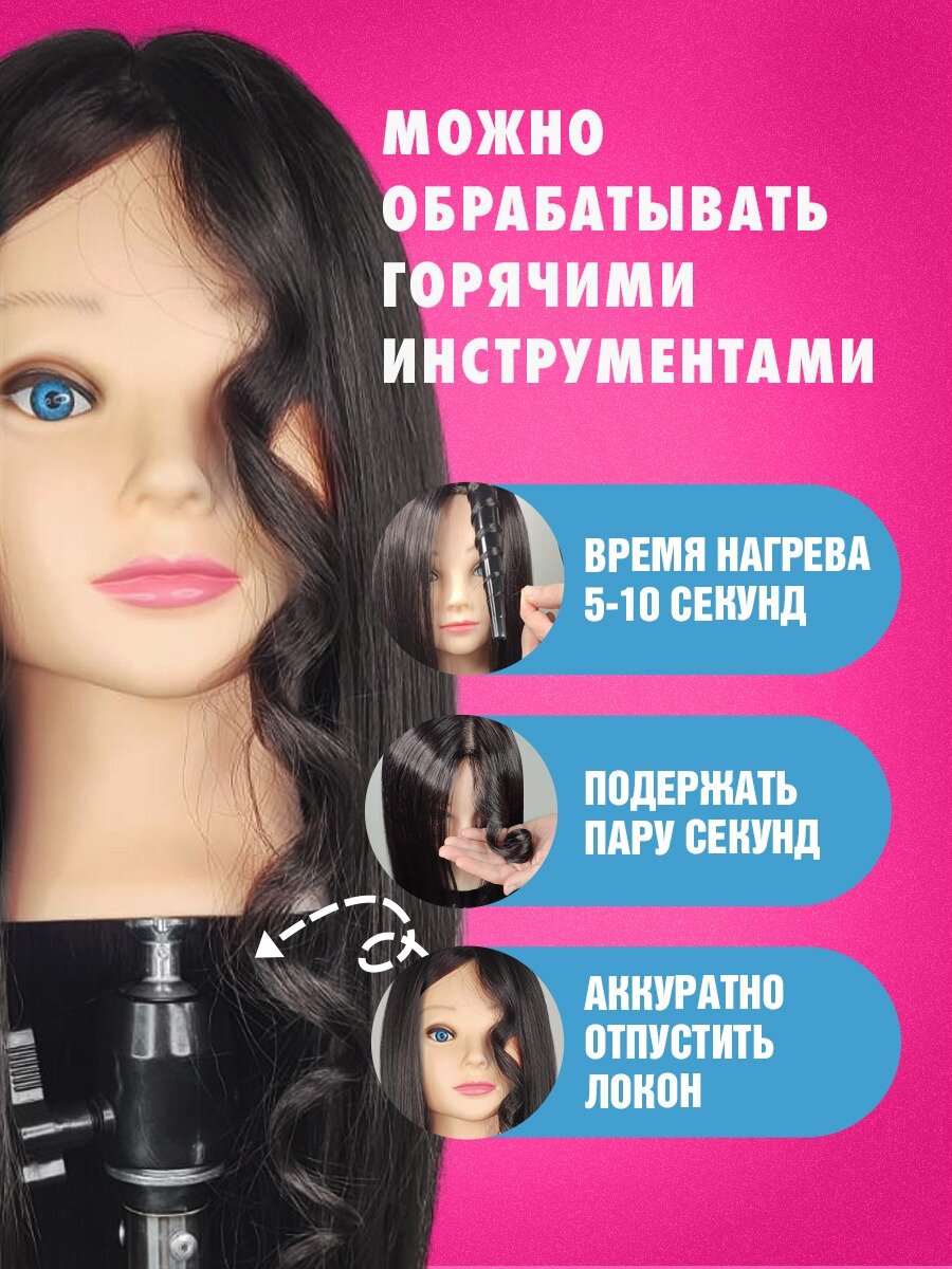 Голова манекен учебная с реалистичными глазами. Состав волос 50/50% натуральный волос/протеиновый волос. Очень красивое лицо. Можно завивать, и обрабатывать выпрямителем. Порадует и ребенка и взрослого, очень красивая. Длина волос 60-65см, средней плотности. Если хотите удивить кого-то, порадуйте его этим прекрасным манекеном. В комплект входит штатив настольный и инструкция к манекену.