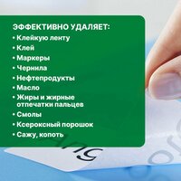 - Эффективно удаляет клейкую ленту, клей, следы маркеров и чернил, нефтепродукты, масло, жиры и жирные отпечатки пальцев, смолу, ксероксный порошок, сажу, копоть и т. д.