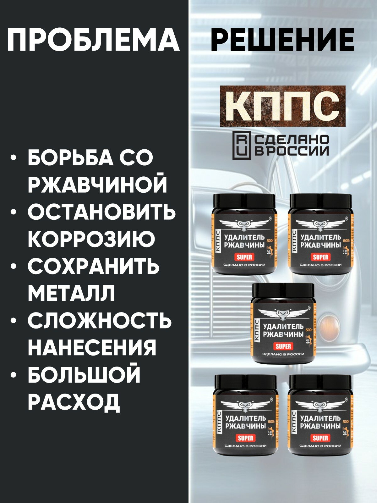Экономичный расход. Удалитель ржавчины кппс Super позволяет удалить стойкие повреждения без применения механической очистки.