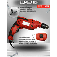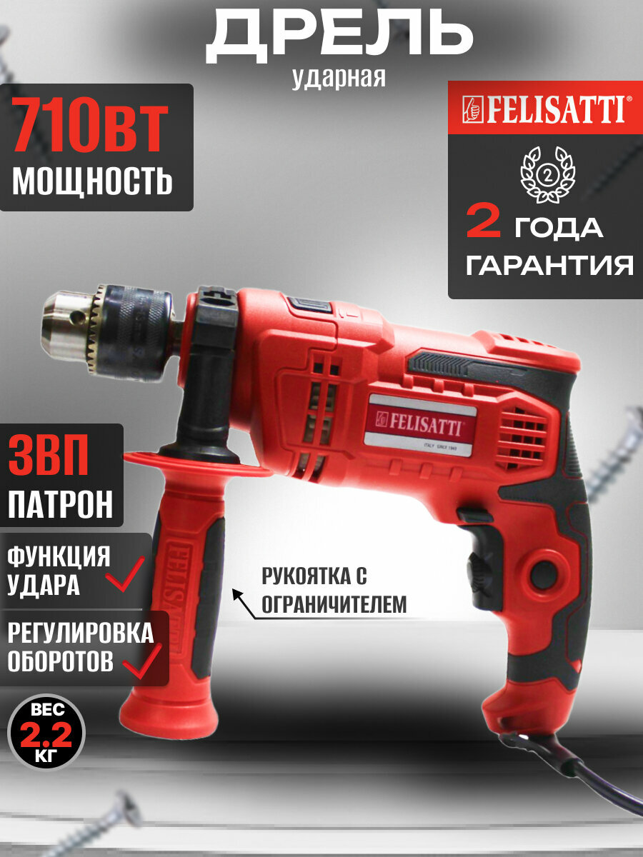 Купить Ударная дрель Felisatti DU-13/710ЭР, ключевая, 710 Вт, ограничитель глубины, красная с доставкой по всей России.