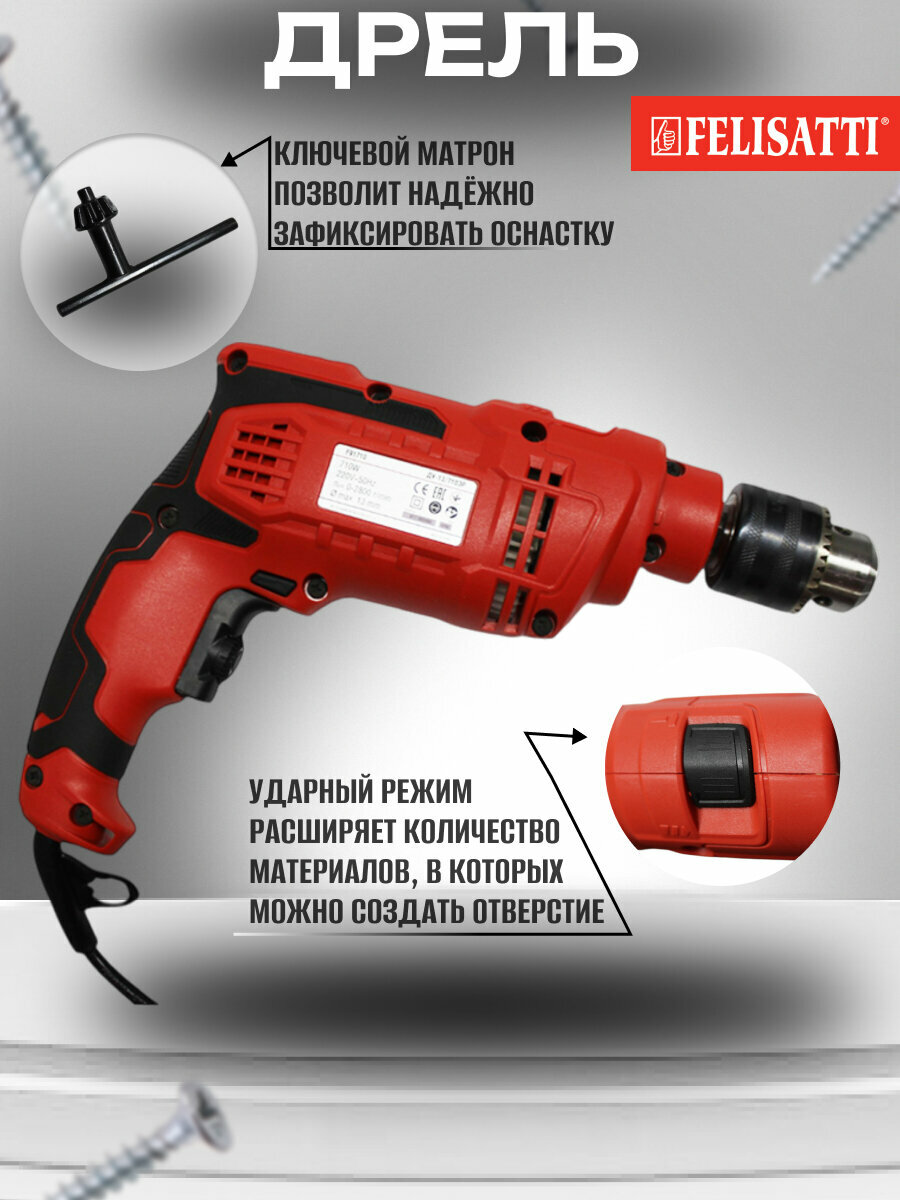 Ударная дрель Felisatti DU-13/710ЭР, ключевая, 710 Вт, ограничитель глубины, красная: сравнение цен, характеристики, фото, актуальное наличие и цены.