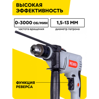 Купить Дрель ударная Ресанта ДУ-15/850, ключевой 1.5-13 мм, 850 Вт, 3000 об/мин, реверс с доставкой по всей России.