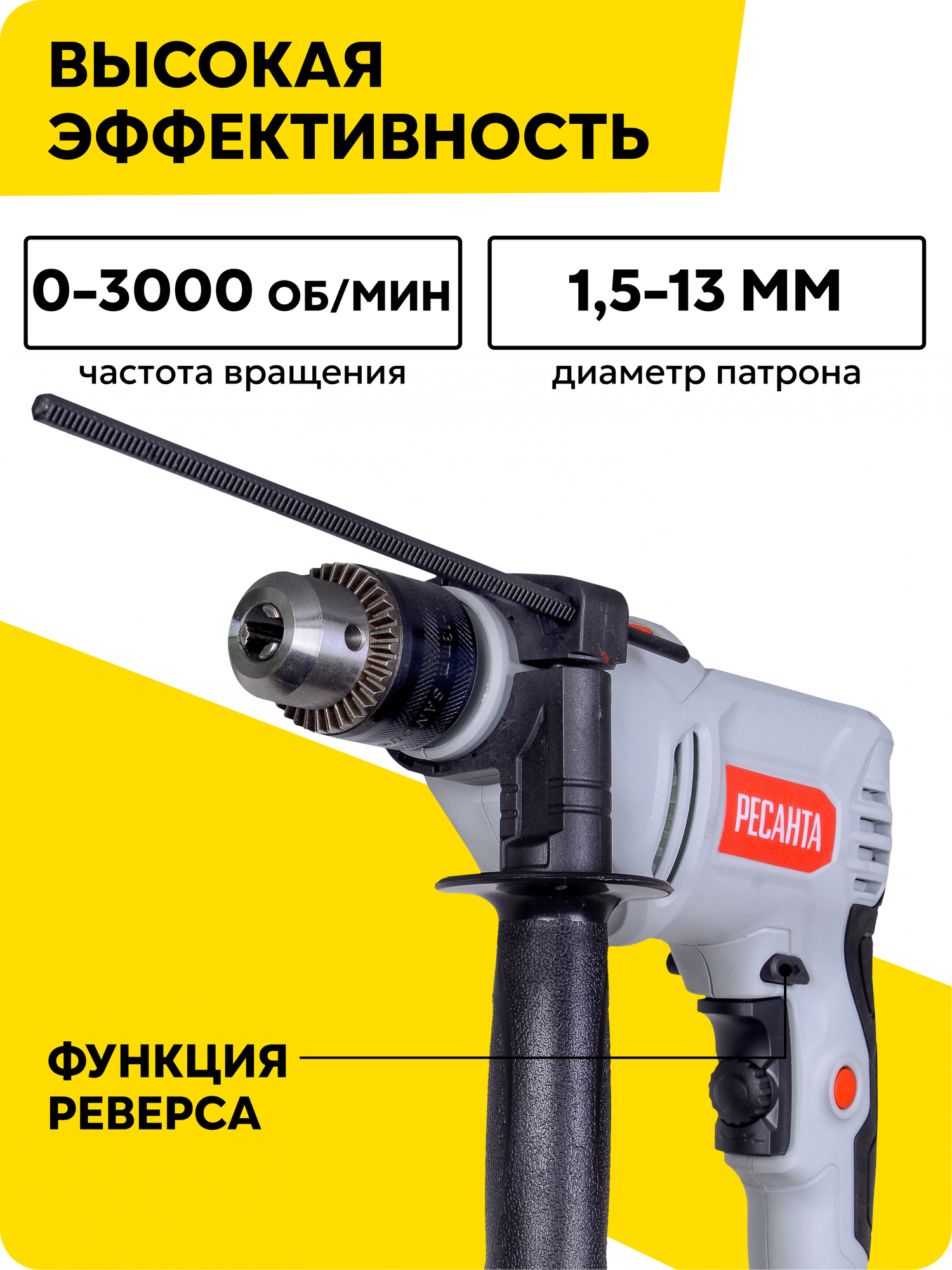 Дрель ударная Ресанта ДУ-15/850, ключевой 1.5-13 мм, 850 Вт, 3000 об/мин, реверс: сравнение цен, характеристики, фото, актуальное наличие и цены.