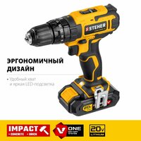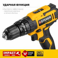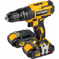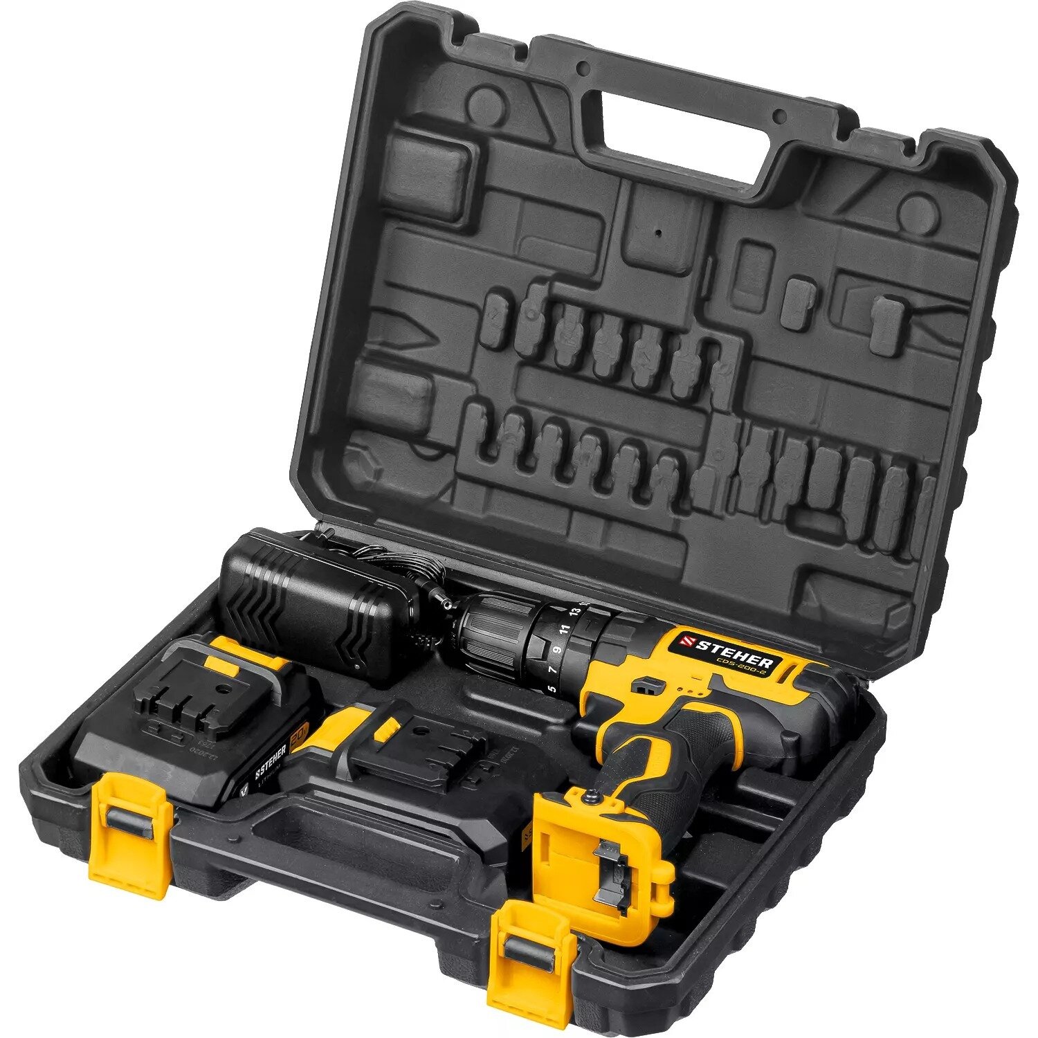 Ударная дрель-шуруповерт, CDS-200-2 STEHER 20 В, 2 АКБ (2Ач), в кейсе