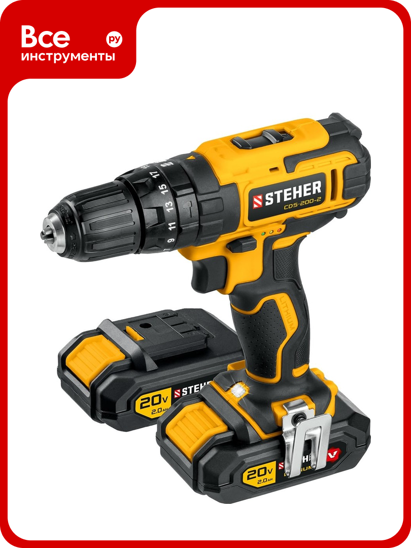 Купить Ударная дрель-шуруповерт STEHER 20В, 2 АКБ 2Ач CDS-200-2 с доставкой по всей России. Ударная дрель-шуруповерт STEHER 20В, 2 АКБ 2Ач CDS-200-2: сравнение цен, характеристики, фото, актуальное наличие и цены.