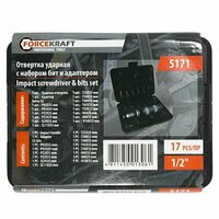 Forcekraft Отвертка ударная с набором бит и адаптерами, 17 предметов 1/2″ в кейсе FK-5171(47289): сравнение цен, характеристики, фото, актуальное наличие и цены.