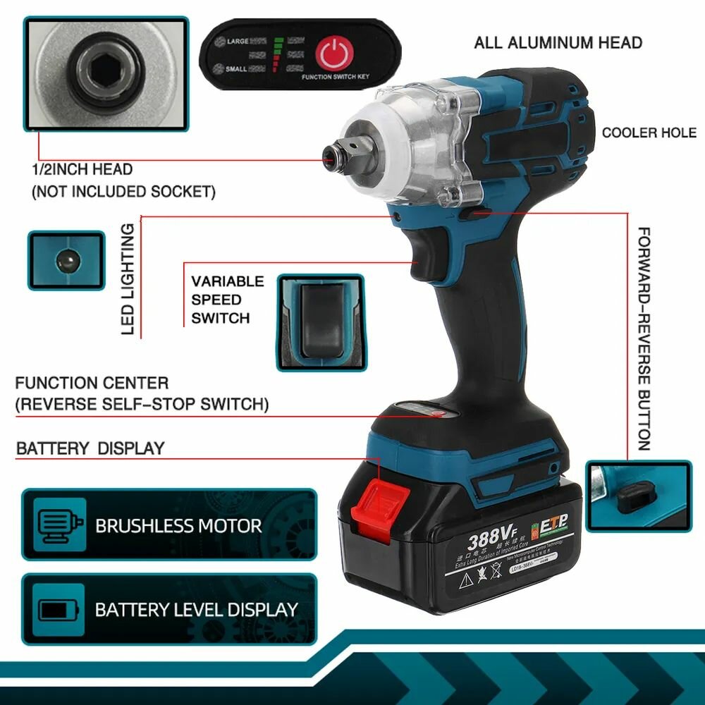 Ударный гайковерт MyPads Drillpro, бесщеточный, аккумуляторный, 1/2 дюйма, 18 В: сравнение цен, характеристики, фото, актуальное наличие и цены.