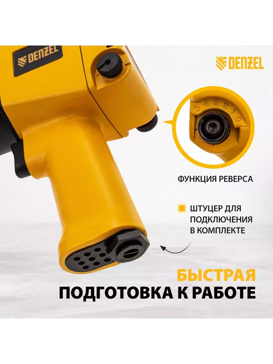 Купить Ударный пневмогайковерт Denzel IWS550 Compact 1/2″, 8500 об/мин, 710 Нм (57470) желтый с доставкой по всей России.