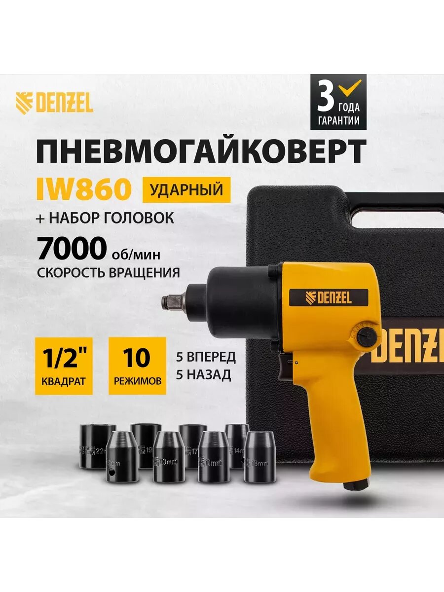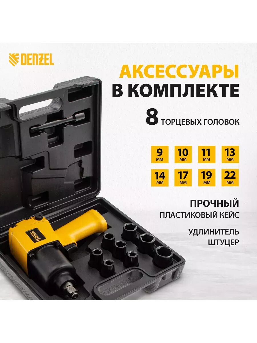 Ударный пневмогайковерт Denzel IWS550 Compact 1/2″, 8500 об/мин, 710 Нм (57470) желтый: сравнение цен, характеристики, фото, актуальное наличие и цены.