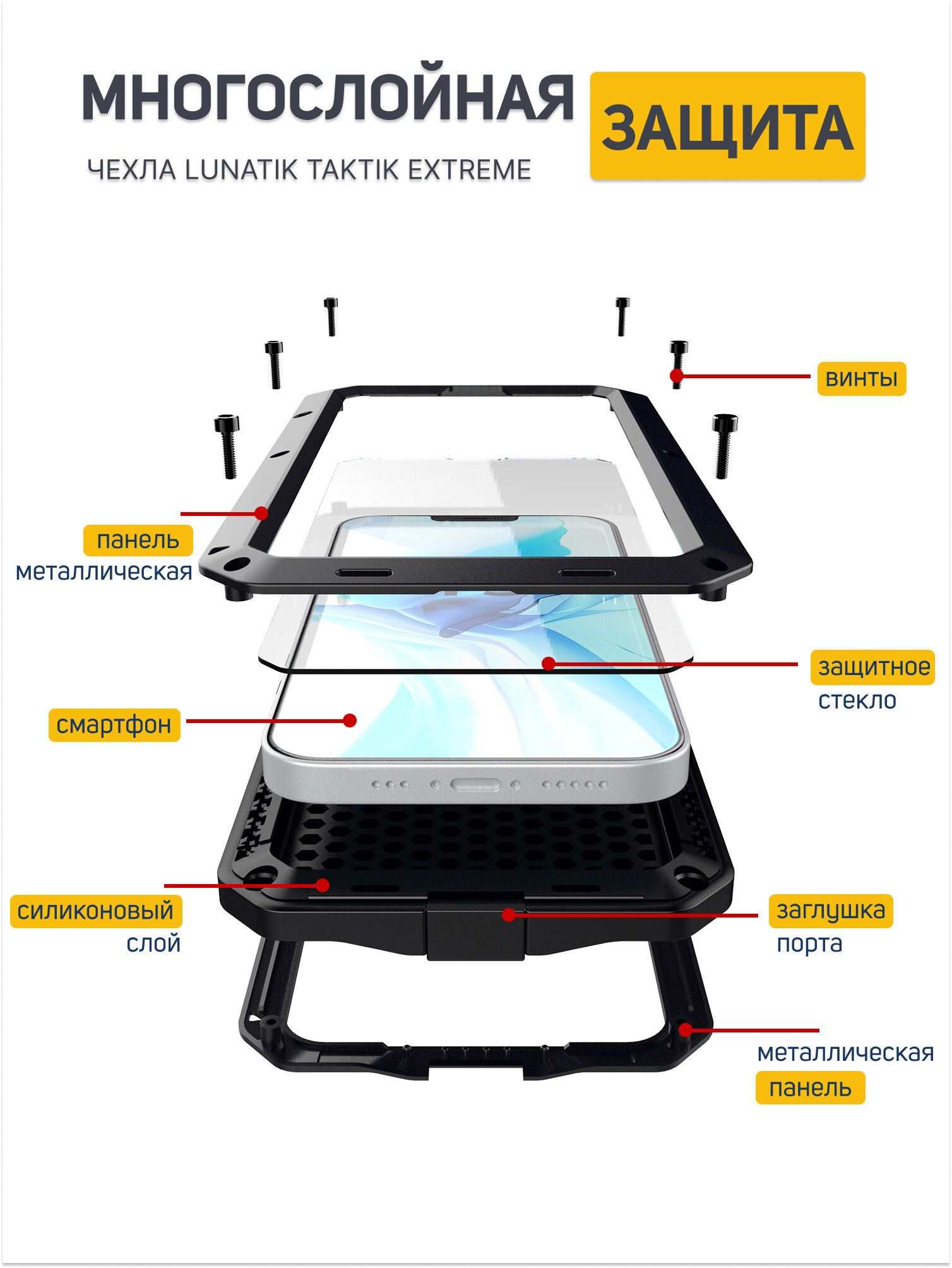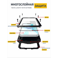 LunaTik Taktik Extreme ударопрочный чехол на iPhone 12 и iPhone 12 Pro - это надежная защита для вашего устройства от повреждений и ударов. Чехол изготовлен из высококачественных материалов, которые обеспечивают максимальную защиту для вашего iphone 12 и iphone 12 Pro. Противоударная сэндвич-система Lunatik включает в себя инновационный силиконовый слой Impact Hex Truss, располагающийся между двумя алюминиевыми панелями. Cистема надежно закреплена с помощью шести болтов-шестигранников. Внутри передней панели находится уплотнительная прокладка для защиты от попадания влаги внутрь корпуса. Динамик закрыт двумя мембранами, порт зарядки – герметичной заглушкой, экран смартфона – защитным стеклом Gorilla Glass последнего поколения что полностью защитит ваш айфон 12 и айфон 12про от снега, влаги и пыли в соответствии со стандартом IP54. Чехол на iphone 12 и iphone 12 PRO полностью совместим с беспроводной зарядкой MagSafe и FaceID Кейс имеет прочную конструкцию, которая поглощает удары и защищает ваш телефон от падений и других повреждений чехол LunaTik для iPhone 12 и iPhone 12 Pro имеет удобный дизайн, который обеспечивает легкий доступ ко всем портам и кнопкам на вашем устройстве. Вы можете использовать свой iphone 12 и iphone 12 pro без каких-либо ограничений, не снимая чехол. Taktik Extreme - это надежный и прочный чехол на айфон 12 и айфон 12 Про, который обеспечивает максимальную защиту для вашего устройства. Он идеально подходит для людей, которые желают защитить свой смартфон от повреждений и ударов.