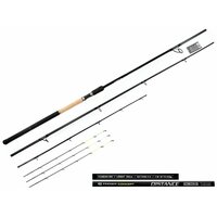 Бланк: – материал - углеволокно HMC (T36) – строй средне-быстрый – конструкция штекерная – соединение колен типа OVER STEEK Вершинки удилища: – сменные разной чувствительности (3 шт.) – с сигнальной раскраской Кольца пропускные: – усиленные – со вставками SIC Рукоятка: – комбинированная – катушкодержатель винтового типа Характеристики: Материал - графит Вес - 368 г Длина рабочая - 450 см Транспортная длина - 157 см Строй - средне-быстрый Тест (г) - 150 Количество секций - 3 Вершинки - 3 шт (3, 4, 5 oz) Посадочный диаметр вершинок - 3 мм