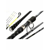 Бланк: – материал - углеволокно HMC (T36) – строй средне-быстрый – конструкция штекерная – соединение колен типа OVER STEEK Вершинки удилища: – сменные разной чувствительности (3 шт.) – с сигнальной раскраской Кольца пропускные: – усиленные – со вставками SIC Рукоятка: – комбинированная – катушкодержатель винтового типа Характеристики: Материал - графит Вес - 368 г Длина рабочая - 450 см Транспортная длина - 157 см Строй - средне-быстрый Тест (г) - 150 Количество секций - 3 Вершинки - 3 шт (3, 4, 5 oz) Посадочный диаметр вершинок - 3 мм