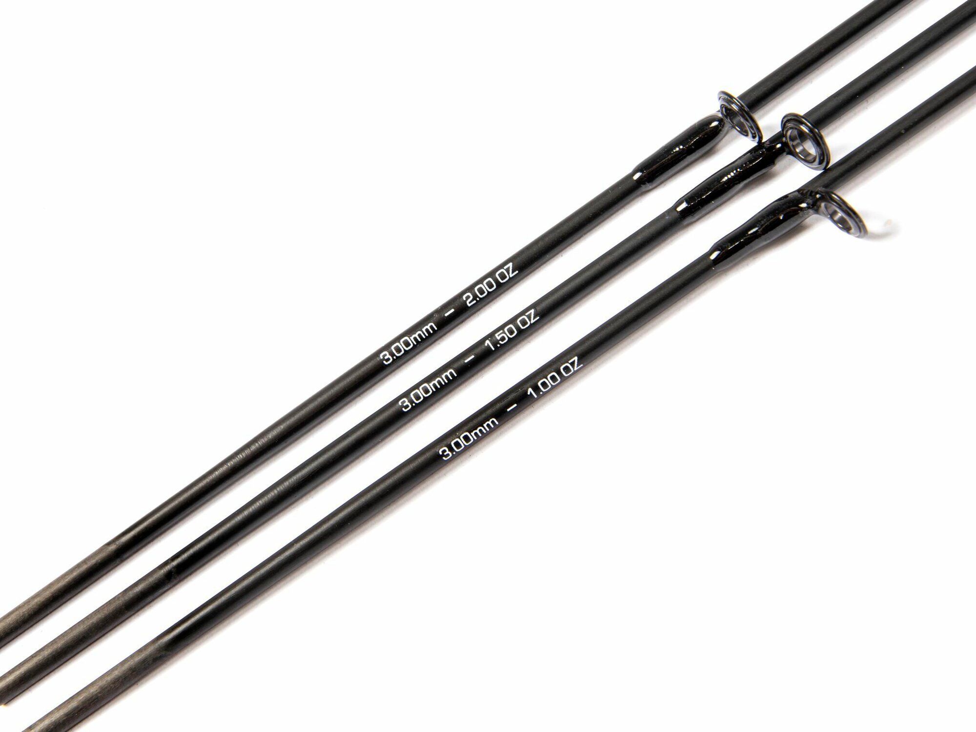 Характеристики: Материал - графит Вес - 294 г Длина рабочая - 420 см Транспортная длина - 147 см Строй - средне-быстрый Тест (г) - 80 Количество секций - 3 Вершинки - 3 шт (1, 1.5, 2 oz) Посадочный диаметр вершинок - 3 мм