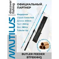 Nautilus Butler – серия бюджетных универсальных удилищ, построенных по принципу фидера. Могут использоваться при ловле как с лодки, так и с берега. Керамические вставки колец SiC позволяют использовать любые типы шнуров и лесок. Установлен удобный катушкодержатель и разнесенная рукоятка из EVA.