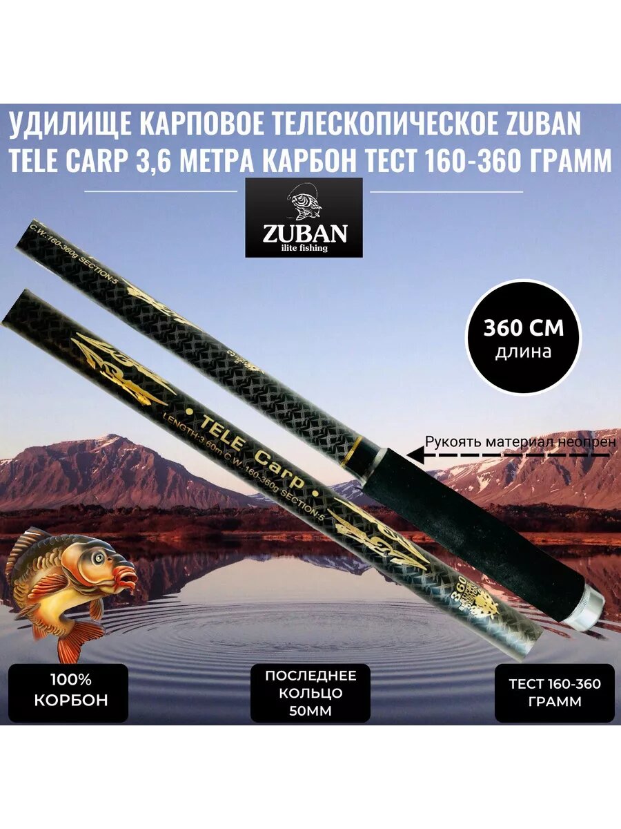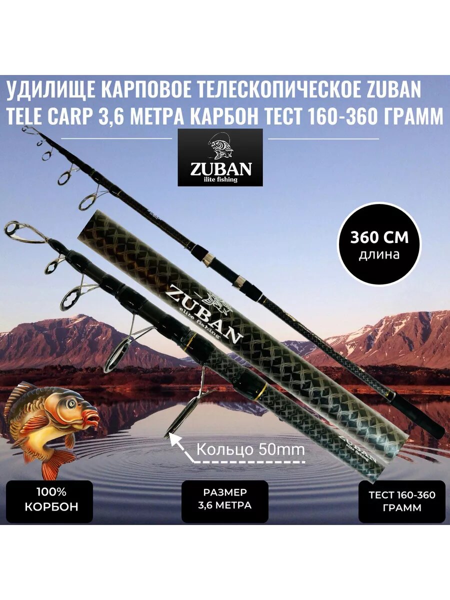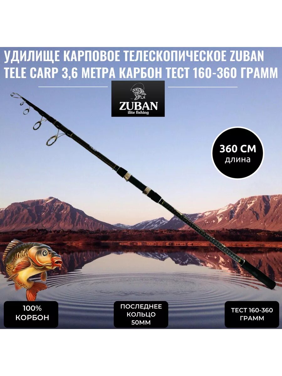 Удилище карповое ZUBAN телескопическое с кольцами 3.6 метра тест 160-360 карбон: сравнение цен, характеристики, фото, актуальное наличие и цены.