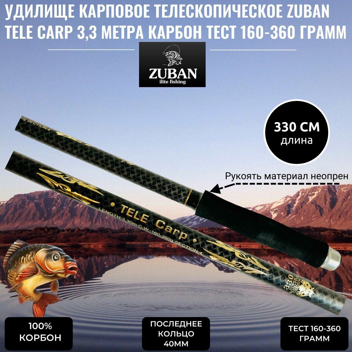 Удилище карповое ZUBAN телескопическое с кольцами 3.3 метра тест 160-360 карбон: сравнение цен, характеристики, фото, актуальное наличие и цены.