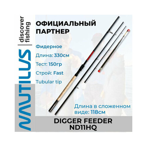 Удилище Nautilus Digger, фидерное, штекерное, строй быстрый, длина 3.3 м, вес 351 г: сравнение цен, характеристики, фото, актуальное наличие и цены.