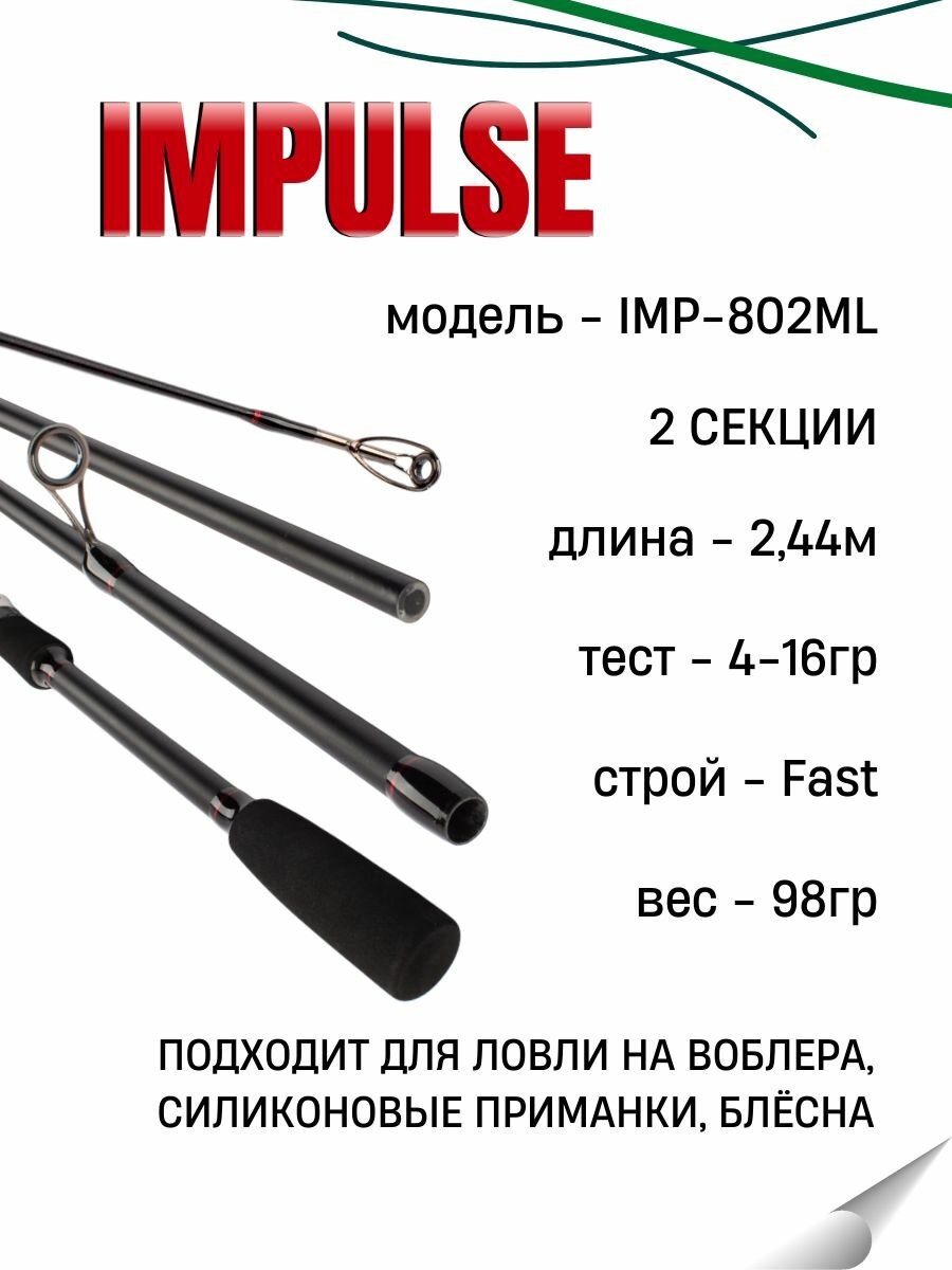 Удилище спиннинговое IMPULSE 2 секции, полая верш, длина 2.44 м, тест 4-16 г: сравнение цен, характеристики, фото, актуальное наличие и цены.