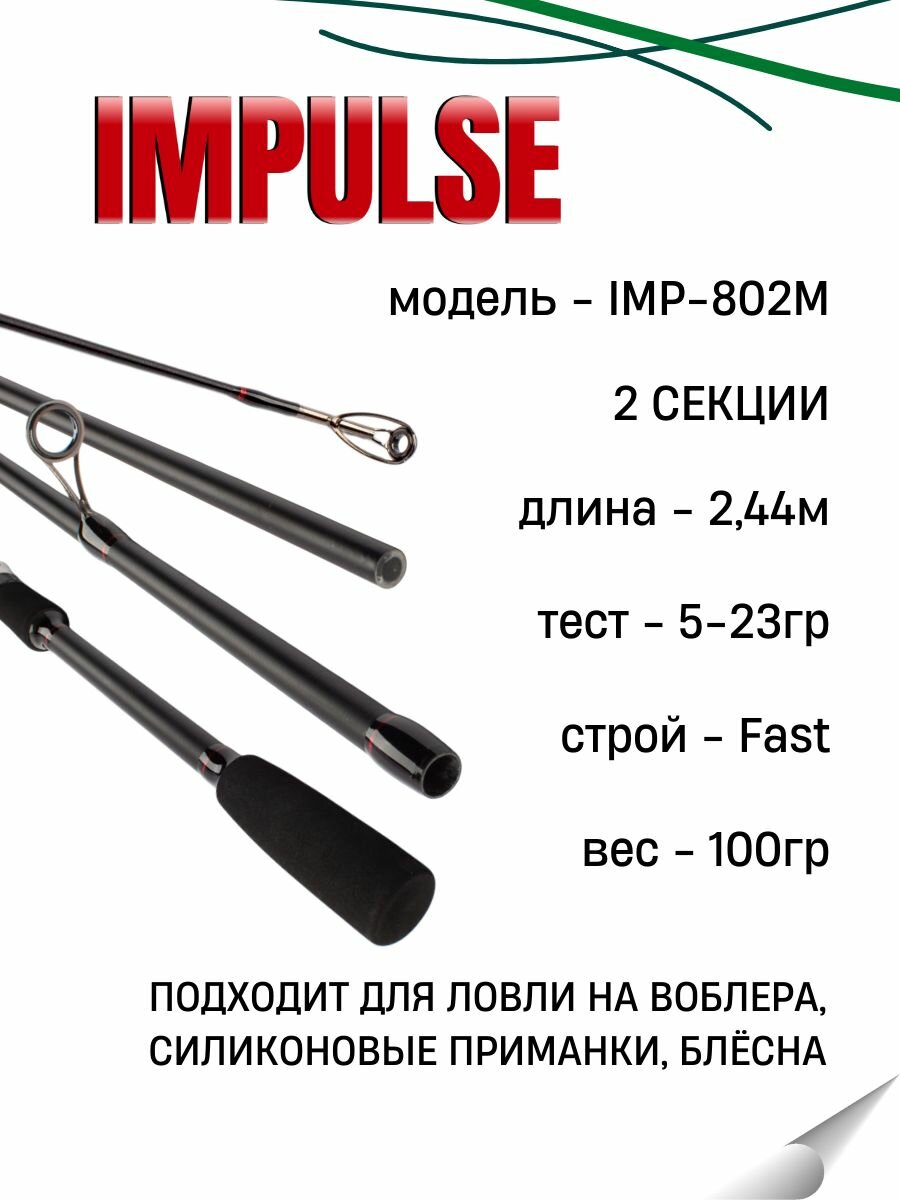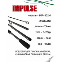 Удилище спиннинговое IMPULSE 2 секции, полая верш, длина 2.44 м, тест 5-23 г: сравнение цен, характеристики, фото, актуальное наличие и цены.