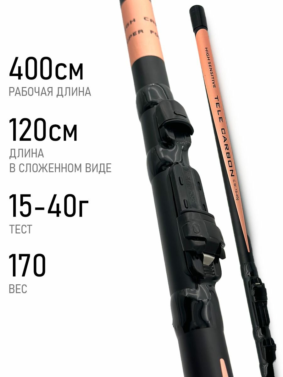 Удилище телескопическое FRECCIA — 4м, тест 15-40г, средне-быстрый строй