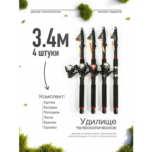 Удочка (удилище) - удобная и компактная для ловли на всех видах водоемов. Полностью готова к рыбалке! Удилище оснащено всеми необходимыми комплектующими. В состав удочки входят: • удочка - 1 шт. • безынерционная катушка SY200X - 1 шт. • поплавок - 1 шт • крючок - 1 шт. • грузило - 1 шт. Длина удочки в сложенном виде - 68 см. (легко поместится в небольшой рюкзак) Оптимальный размер 3,4 метра для начинающего и опытного рыболова. Удилище выполнено из биопластика повышенной прочности. Легкое и удобно лежащее в руке. Кольца с керамическими вставками сохраняют леску от перетирания и обеспечивают плавность изгиба. Удочка оснащена безынерционной катушкой. Комплект 4 шт. Внимание! Цвет катушки, форма и цвет поплавка может отличаться от представленного на фото! Отличная удочка для рыбалки, также будет незаменимым подарком для любого мужчины! Рыбачьте с удовольствием!