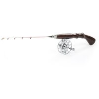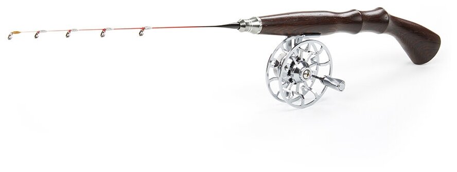 Удилище зимнее Higashi Gold Fish 5гр (venge) Эргономичная рукоять удочки выполнена из дерева под названием венге. Удочки оснащены металлическими катушками с регулируемым тормозом. Бархатный чехол и богатая упаковка входят в комплект. Удочки оснащаются сменными хлыстиками из стеклопластика, технология производства которого защищена патентами. Хлыстики длиной 23см имеют параболический строй, т. е. весь хлыст работает как кивок. Оснащены пятью кольцами. Удочка, оснащенная таким хлыстом отлично подойдет для ловли всевозможных не крупных хищных рыб – окунь, лещ, плотва и т. д. Тесты сменных хлыстиков длиной 23 см – 5гр (SOFT), 12гр (MEDIUM), 20гр (HARD). Хлыстики длиной 30 см и 41 см имеют быстрый строй и кивок длиной 7,5 см на конце. Кивок является продолжением хлыста и является с ним одним целым. Данные хлысты оснащены двумя кольцами. Тесты сменных хлыстов длиной 30см следующие: 5гр (SOFT) и 20гр (HARD). А тест сменного хлыстика длиной 41см - 40гр (HARD). Они подойдут для ловли как не крупной рыбы , такой как окунь, лещ и т. д, так и
