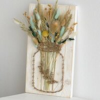 Удивительное деревянное панно с сухоцветами Декоративная картина для интерьера Стабилизированные цветы TRAVA_DECOR( лагурус, эвкалипт, лен, пшеница) 35*20*2см, Массив сосны, Покрыто маслом, Настольный декор, ЭКО.