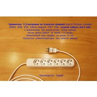 Купить Удлинитель 11,5-метровый на 6-розеток мощный MAKEL 250В, сечение 3х2,5 мм2, белый, вилка прямая класса Premium с доставкой по всей России. Удлинитель 11,5-метровый на 6-розеток мощный MAKEL 250В, сечение 3х2,5 мм2, белый, вилка прямая класса Premium: сравнение цен, характеристики, фото, актуальное наличие и цены.