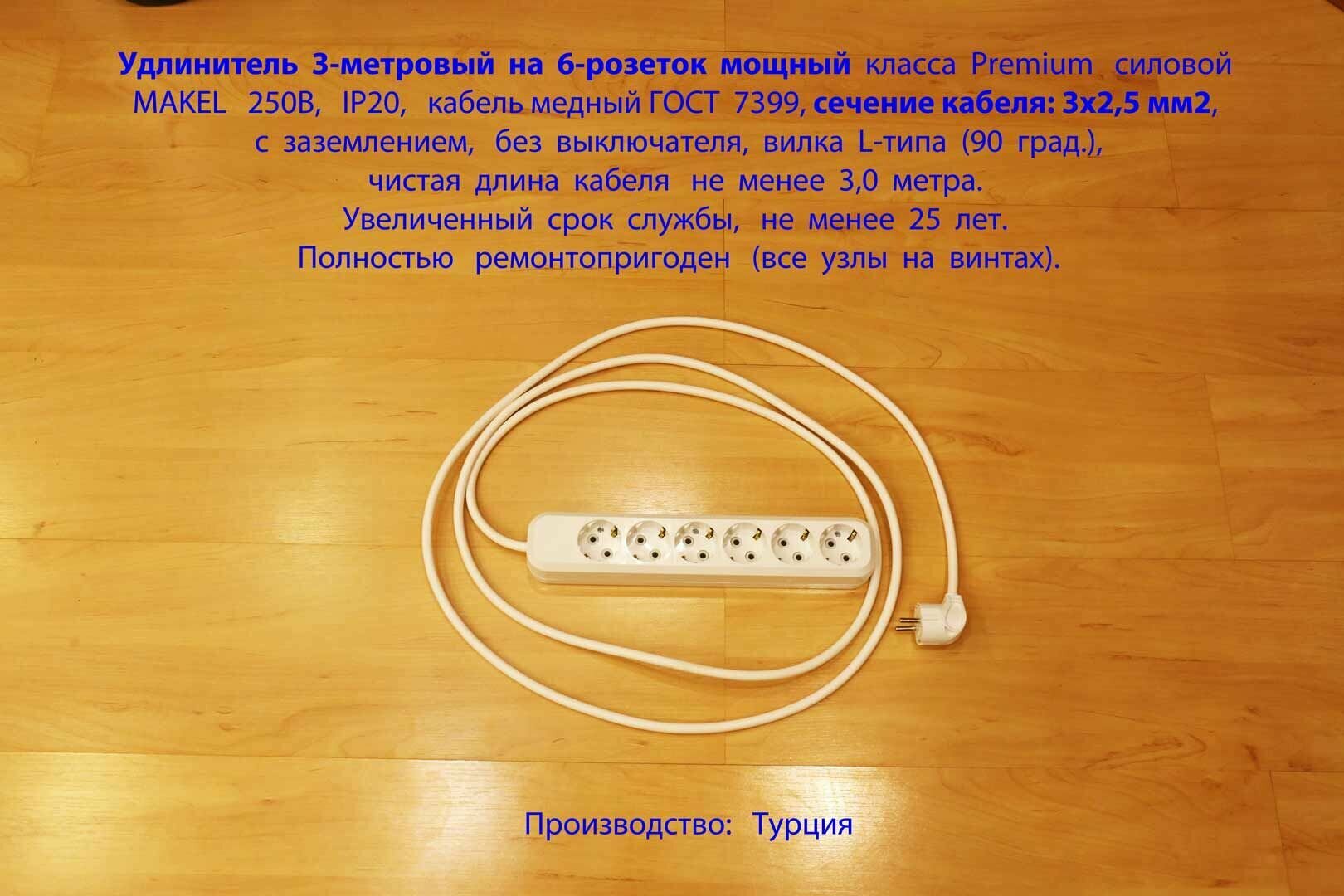 Купить Удлинитель 3-метровый электро силовой мощный MAKEL 250В на 6 розеток, сечение 3х2,5 мм2, белый, вилка угловая класса Premium с доставкой по всей России. Удлинитель 3-метровый электро силовой мощный MAKEL 250В на 6 розеток, сечение 3х2,5 мм2, белый, вилка угловая класса Premium: сравнение цен, характеристики, фото, актуальное наличие и цены.