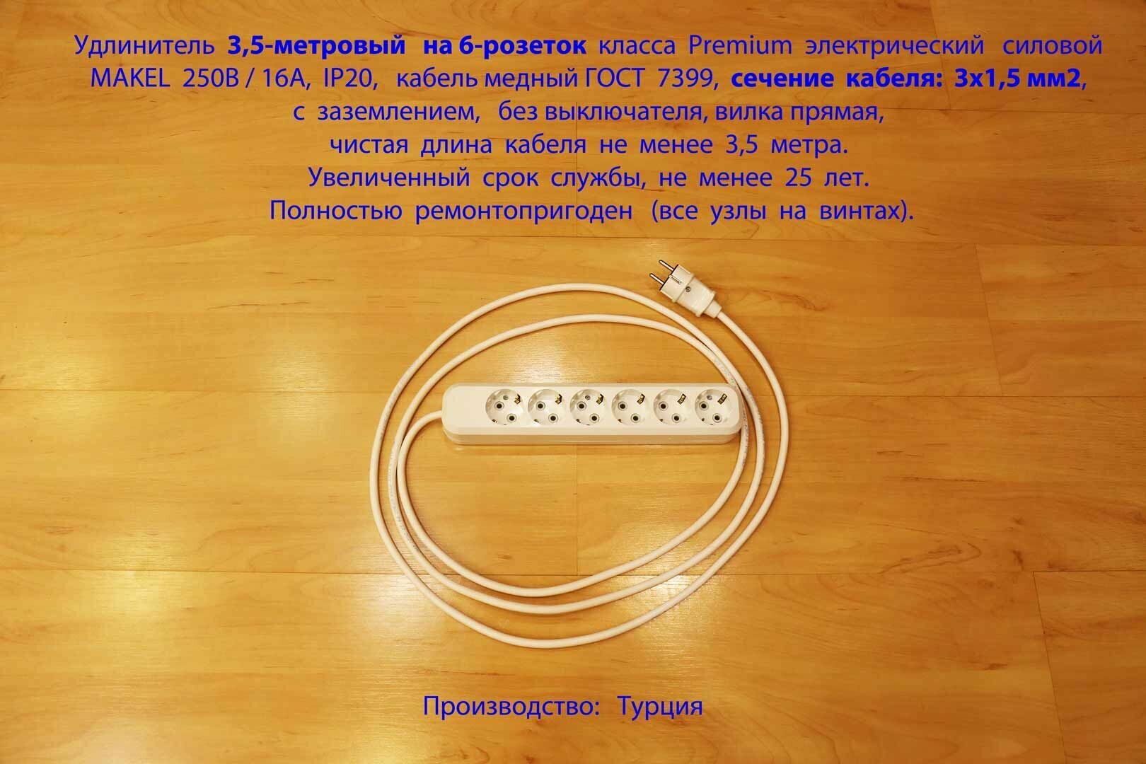 Купить Удлинитель 30-метровый электро силовой MAKEL 250В/16А на 6 розеток, сечение 3х1,5 мм2, белый, вилка прямая класса Premium с доставкой по всей России. Удлинитель 30-метровый электро силовой MAKEL 250В/16А на 6 розеток, сечение 3х1,5 мм2, белый, вилка прямая класса Premium: сравнение цен, характеристики, фото, актуальное наличие и цены.