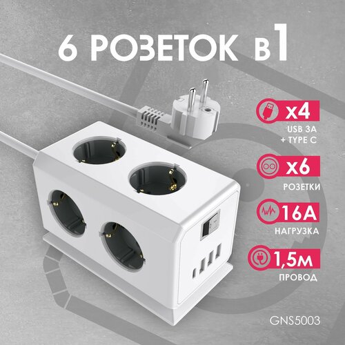 Удлинитель ROCKETSOCKET BiCube Extended 6 Euro 16A, 4 USB 3A+C с блоком 5В/3.1А, кабель 1,5 м цвет белый GNS5003: сравнение цен, характеристики, фото, актуальное наличие и цены.