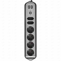 Компактный угловой удлинитель brennenstuhl®estilo из высокопрочного пластика и поверхности из высококачественной нержавеющей стали привносит порядок в ваш дом. Универсальный удлинитель можно легко прикрепить как кухонный удлинитель к столешнице или как настольный удлинитель для рабочего места с помощью специальных клейких прокладок. Сетевой удлинитель на кухне или на столе можно установить горизонтально или вертикально. Разветвитель питания имеет 4 розетки с заземленными контактами и 2 розетки европейского стандарта, поэтому вы можете использовать несколько устройств одновременно. Технические характеристики: - Длина кабеля: 2 м - Высота: 36,50 см - Длина: 6 см. - Вес: 0,61 кг - Ширина: 11 см - Обозначение кабеля: H05VV-F 3G1.5. - Цвет корпуса: черный, серебристый - Использование: домашнее хозяйство - Тип штекера: Угловой штекер - Общее количество розеток: 6 - Максимум. выходной ток USB: 3,10 А - Функция USB: зарядное устройство USB - Выходной разъем типа USB: Тип A - Степень защиты: IP20 Гарантия 1 год. Производитель: Hugo Brennenstuhl GmbH & Co. KG, Германия.