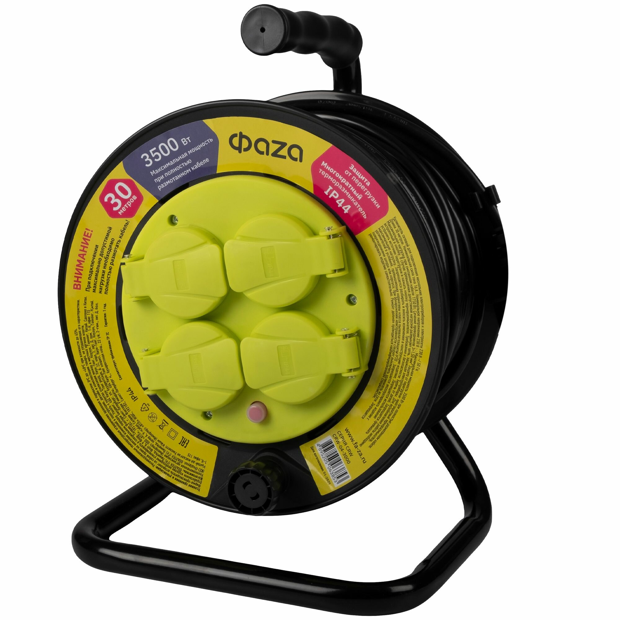 Удлинитель ФАZА CRW-04-3000, на катушке, 30 м, 4 розетки, IP44, 3500Вт, заземление: сравнение цен, характеристики, фото, актуальное наличие и цены.